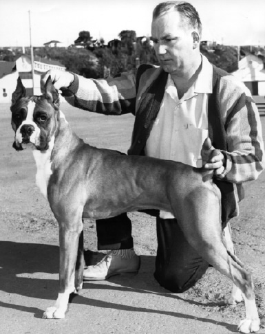 Wally Jacob ← Previous Next → Wally Jacob, EKC Life member, Conformation Judge and CKC board member, with one of his fine Boxers. Their kennel was also well known for Kerry Blue Terriers.